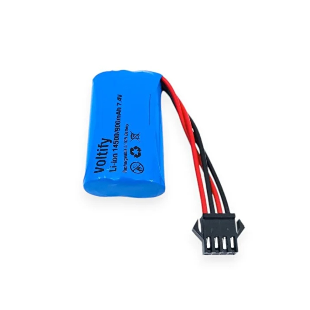 Voltify 7.4V 14500 900mAh RC Oyuncak Araba Pili – SM-4P Soket – 4 Kablolu, yüksek kapasitesi, kolay kullanımı ve güvenilir yapısıyla uzaktan kumandalı oyuncaklarınız için ideal bir güç kaynağıdır. Güçlü performansı ile sizi her zaman yarı yolda bırakmayacak ve keyif dolu anlar yaşatacaktır.