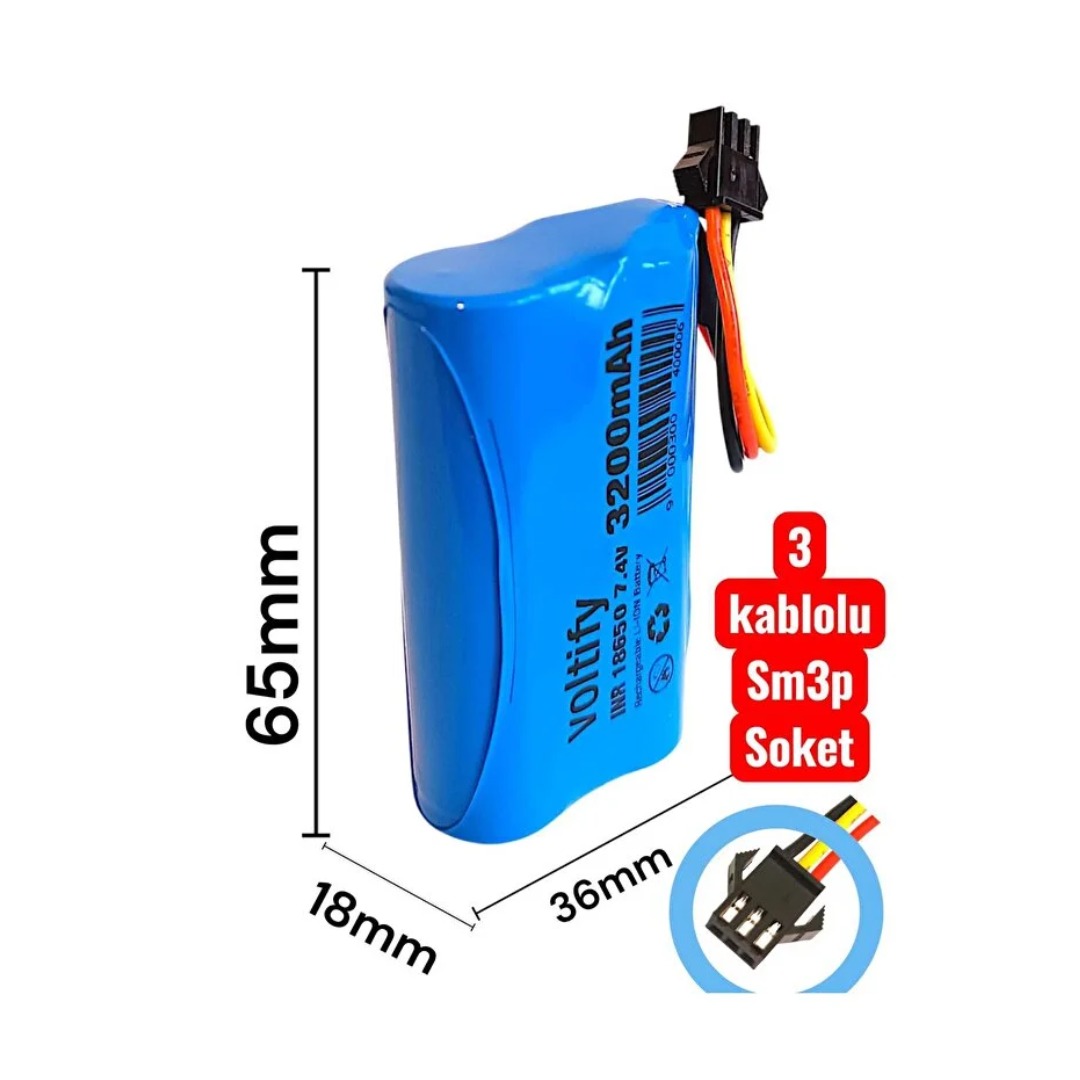 Voltify 7.4V 18650 3200mAh RC Oyuncak Pili – SM-3P Soket – 3 Kablolu